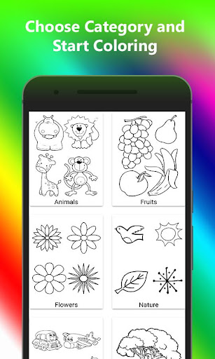 Painting app will let you improve your painting imagination, including well-chosen black and white coloring pages. This free painting app will let you have a fun and improve your painting skills and learn to concentrate. This free drawing app contains big collections of black and white coloring pages. The use of our drawing app is very easy. Choose category and choose any coloring page you want and start painting by choosing a color from a color palette. Color palette includes 21 different colors. Our coloring book, is full of beautiful coloring pictures and designed for all ages.