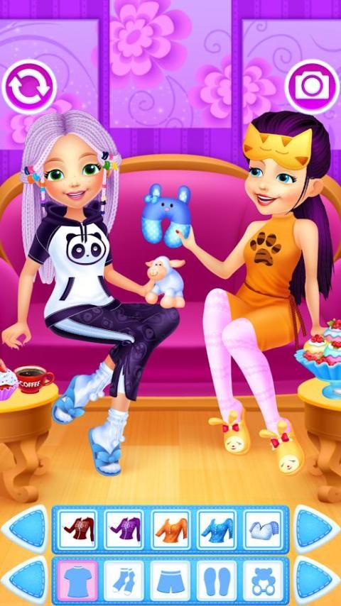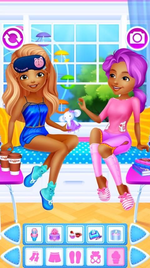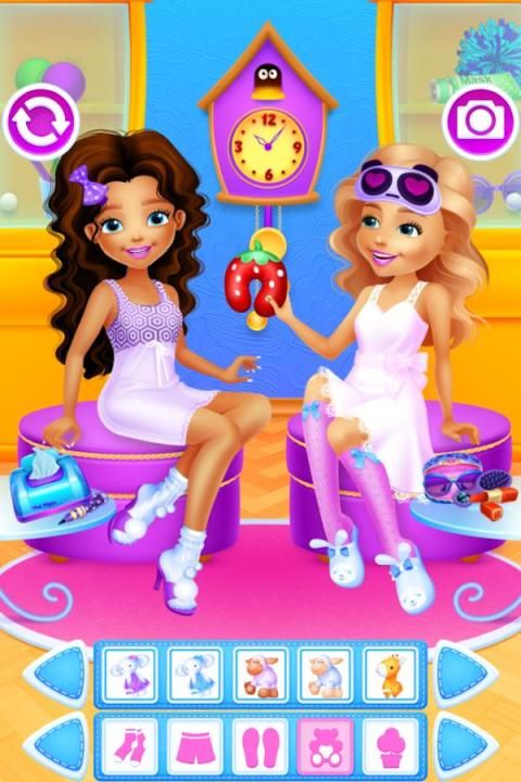 A pajama party with your BFF (best friends forever) means being yourself, in a natural and simple way, but one still needs to prepare. Girls will make cool hairstyles and pick fancy pajamas and other accessories. All of that you can put on your dolls in this amazing dress up game for girls completely free.