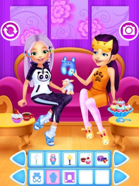 For the cozy feel, place some pillows and plush toys around. When everything is ready, have a nice chat with your BFF. You could order pizza, play some games, text your friends, comment on the latest news on Facebook, look through fashion magazines or just gossip about mutual friends and schoolmates. Just download and play this new and great makeover game on your Android for free.