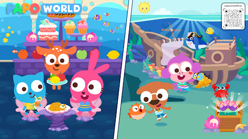 Papo Town: Ocean Park offers a simulated ocean park with beautiful coastlines and lovely undersea creatures! There are 4 main stadiums for exploration: animal show hall, marine science and technology museum, souvenir shop and underwater world. Move around the items to interact with them. If you collect 6 diamonds, you will unlock the pirate ship scene, too!