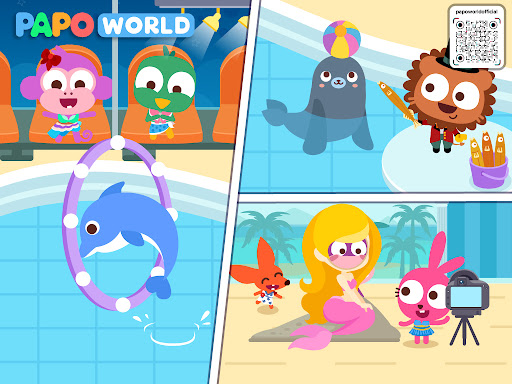 Welcome to Papo Town Ocean Park! This is a perfect place for summer vacation! How about making a huge sand castle? Lying on the beach and have a cold drink? Or a beach barbecue party! The stars in the ocean park prepares a splendid show for you, too!