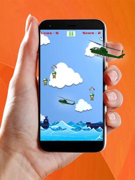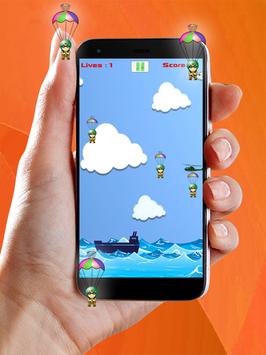 Parachute Panic is an adventure game. In this game the paratroopers fall from the planes flying in the sky above the sea, you have to land them safely on the ship with their parachute open Or else they will die.There are many other obstacles that come in the way of landing the characters safe, you have to deal with those and make it safe.