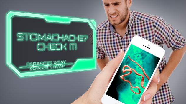 Parasites in the stomach - a joke application that simulates x-ray scan, ultrasound of the body on worms, germs and viruses! Run the scanner, point it at the belly of each, and pretend you have discovered worms in the stomach! Look scared, as if worms is about to come out! Ask whether he ate unwashed fruit? Wash hands after using the toilet? Infection and germs around! Scare a friend! Huge annelid worms inside the stomach shock the bravest! Tell that friend needs to go to the hospital! Realistic photos of beetles, worms and viruses can cause nausea and vomiting! Be careful!