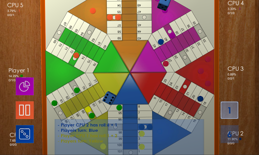 The Parchis is a game similar to Parcheesi and Ludo, Parchis can be played by 2-6 players. Each player has 4 tiles of the same color (yellow, red, green, blue, purple, or orange) and one or two six-sided dices. The game is to take the tiles to the finish line of the game board.