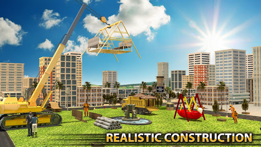 Use all heavy machinery such as bulldozer, backhoe and aqua splash to make city playground craft. Start the advanced construction simulator like a tycoon of builders and enjoy the fantasy adventure. Extract the material from quarry and make sand slides, waterslide and swings just like a school playground.