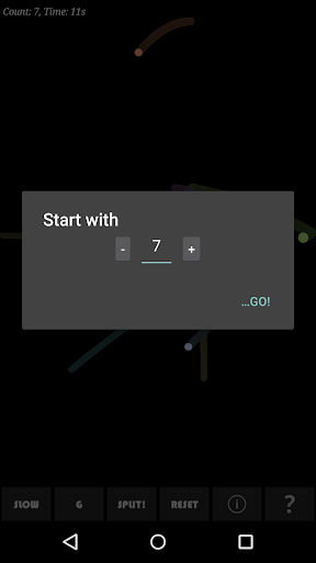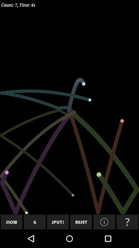 A simple task - clear all the particles by splitting them into smaller bits, with your finger. But things can get complicated as the box is very sensitive and spawns new particles when touched in empty areas. Three additional controls - slow, toggle gravity and Split! are there to help.