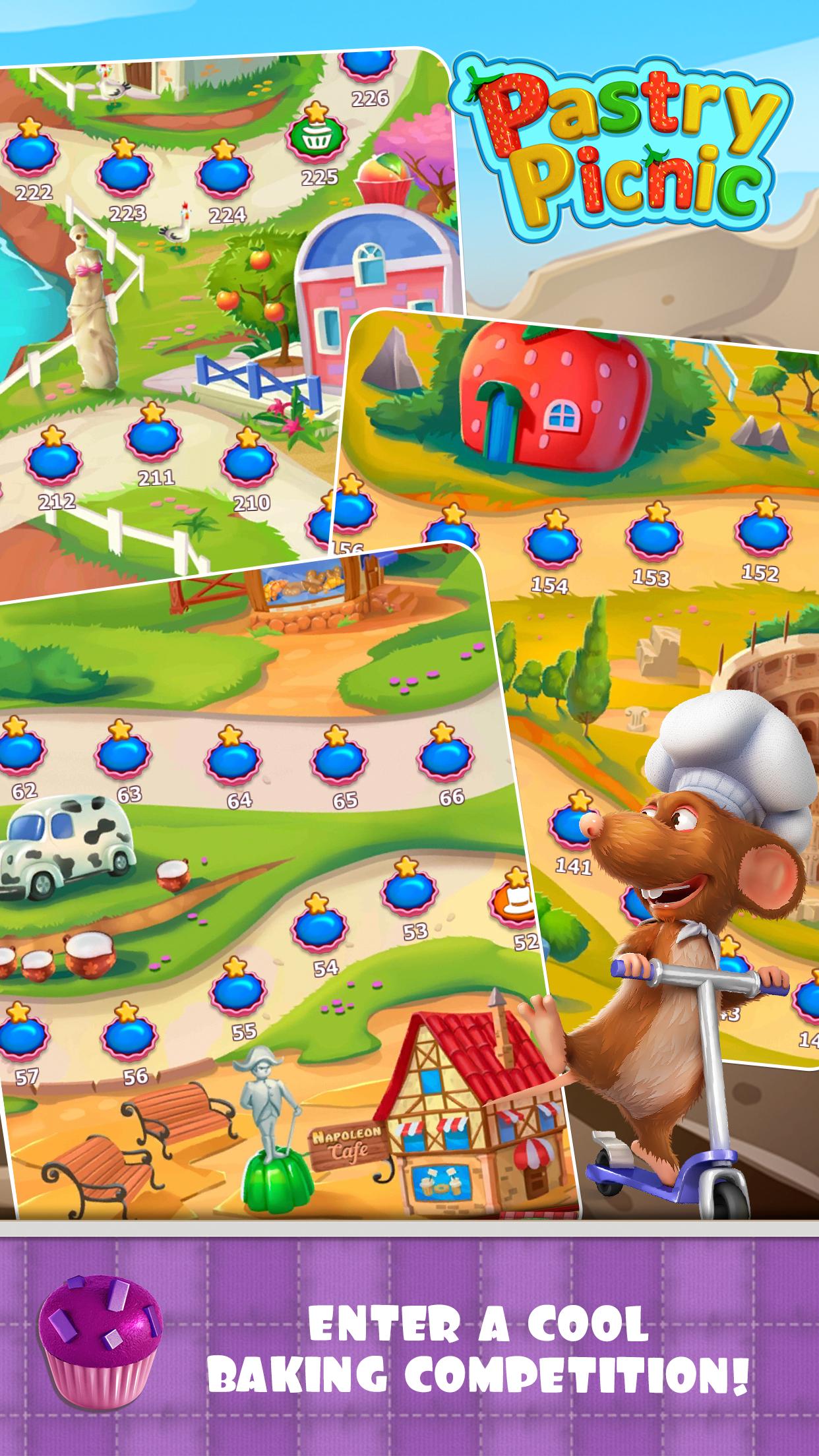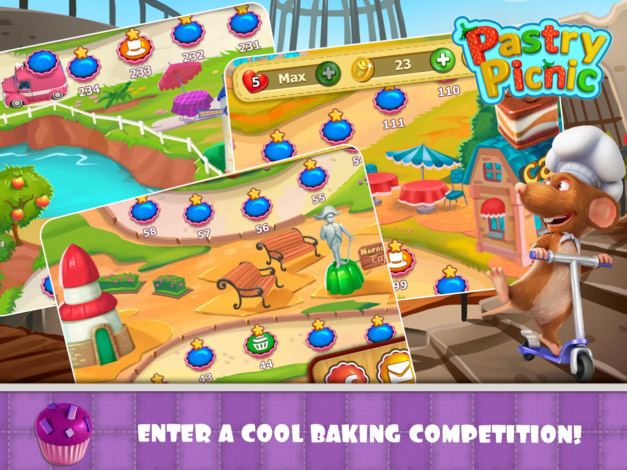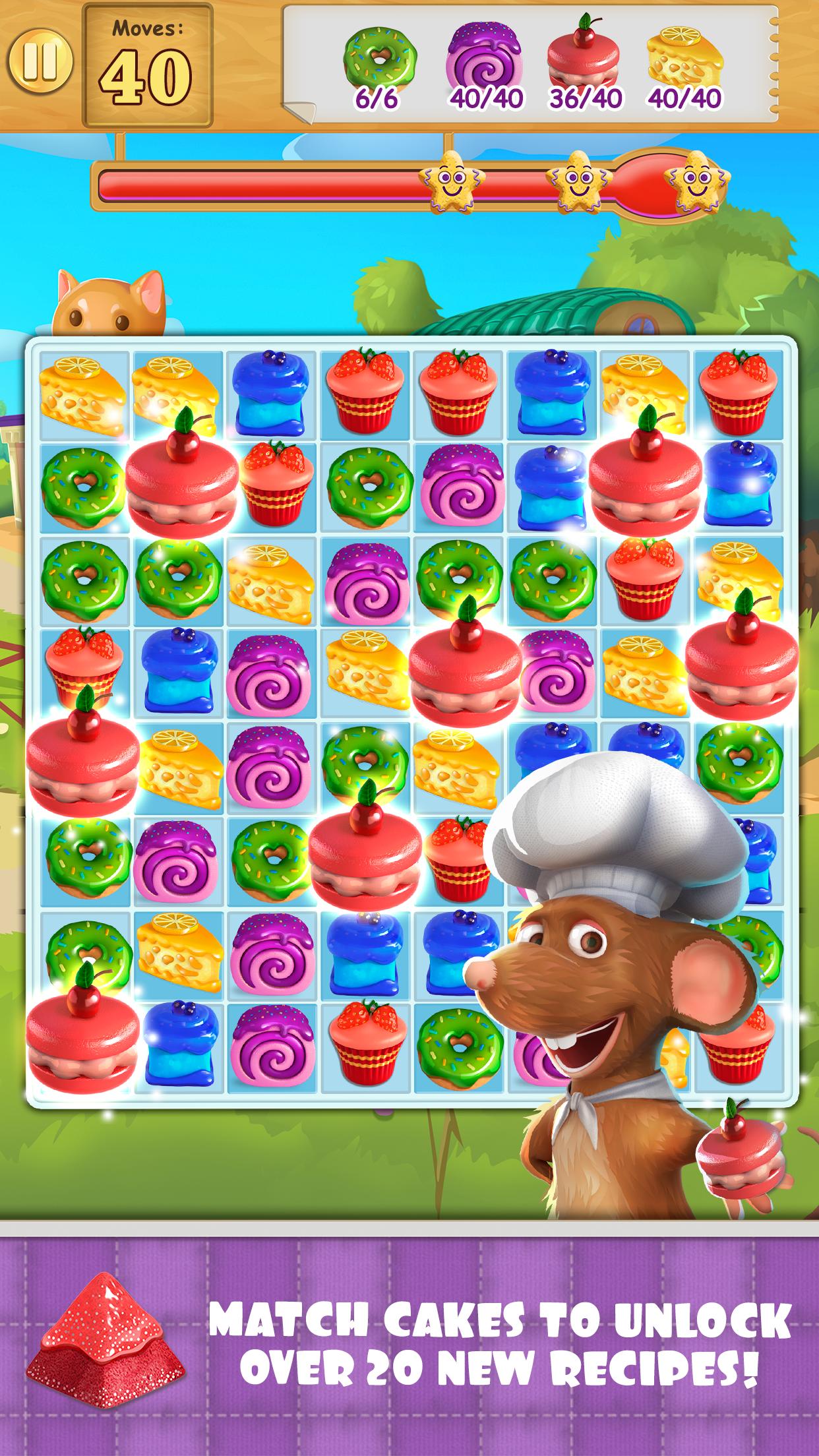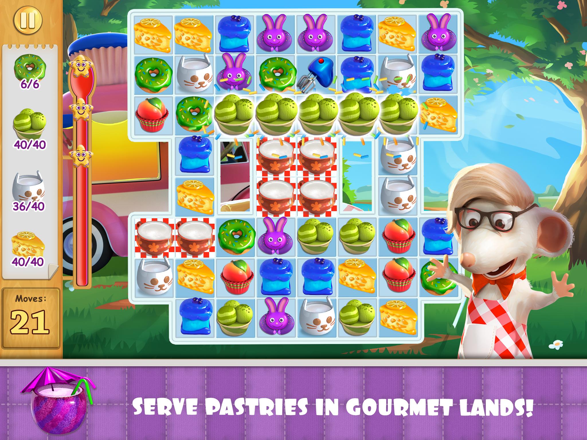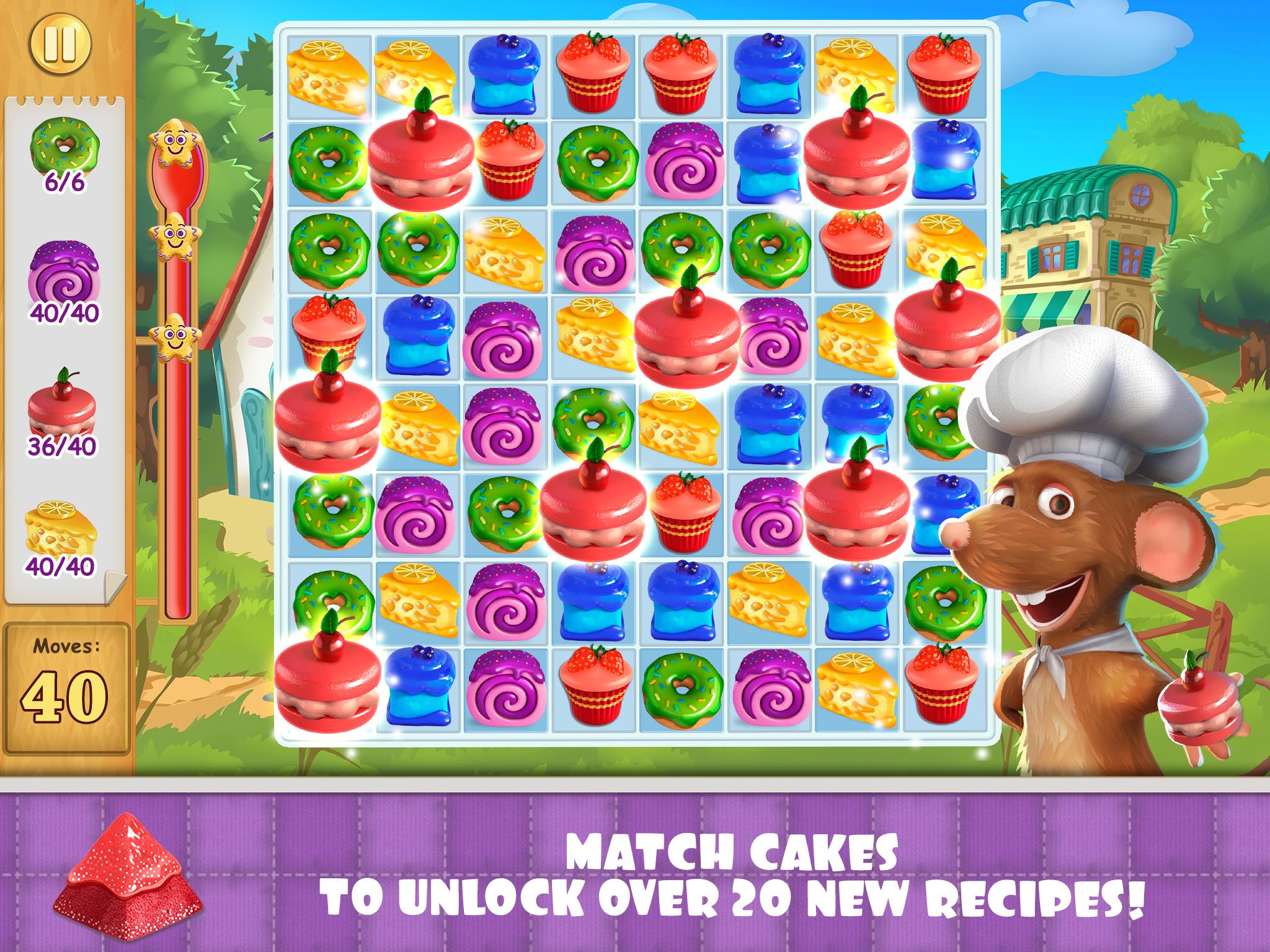 Match cakes and grow from apprentice to chef! We’ve got addictive three-in-a-row levels with pastries, baker Battles with a crafty fox and recipes for the world’s most delicious desserts. Unlock, learn, and serve!