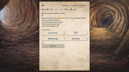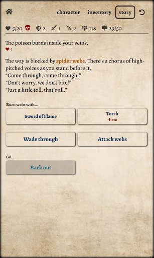 This is a game of words and choices. Take part in a fantasy narrative and decide how you want to act. Will you explore the ancient ruins? When to use magic? And what to buy from the merchant?