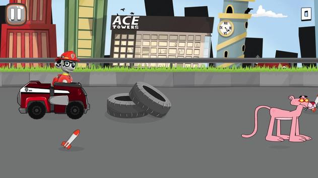 Let's play racing in the street together puppy and pink panter. Control the puppy to race and destroy all the pink panter and avoid obstacles on the road. Collect rockets on the road and tap to shoot the rockets destroying enemies. This game is very interesting for those who like adventure and action games of pink panther. Collect the highest score to win the game with your friends.