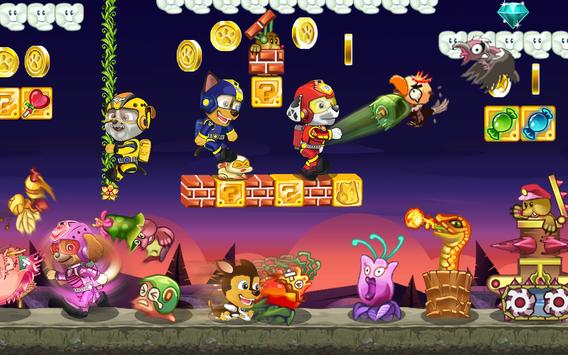 The platformer Paw Superhero game will run and jump up to avoid many obstacles, shoot and fight against fly fire ninjas.