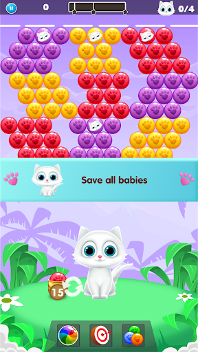 -You need to aim & blast, drop & burst all colorful bubbles of the same color in order to save cute kittens.