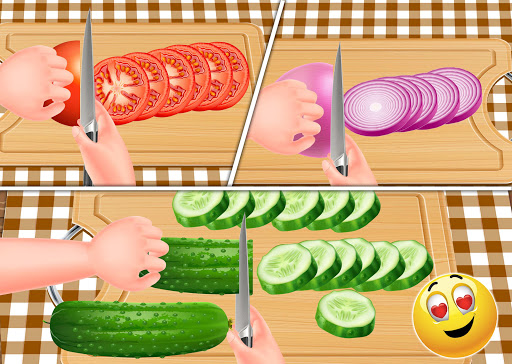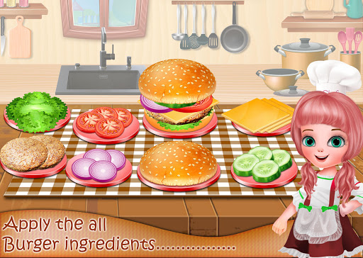 Burger is a type of Fast food consisting of one or more patties usually placed inside bun...Hamburger may contains variety of things as Cheese ,Vegetables,Patties or anything you want to add..Perfect Top Homemade burger needs Onions,Tomato,Cucumber and lettuce to add with beef or chicken patties....Cut these vegies in your own serving style...Be Careful as you don't cut your hand...Mincing Meat to make tasty Patties of Special Burgers...Add ingredients into the meat to make it more delicious and mouth watering burger....Mix all ingredients and make round patties of your hamburger...Fry these Patties into the oil....Fry it in low steam as it turns into golden brown...Now its time to assemble your burger.....take the bun...put tomato sauce onto the bun..now put your Tasty meat Patty....Add all the vegetables over the patty....Add cheese over these vegetables to make it more mouth watering.. Let's become a cook and serve your food lovers..Best fun game ever with fun kids. In burger shop you have Create you own taste with all little buddies...Become the real master chef of this world.. Practice your cooking skills and techniques with our original recipes....