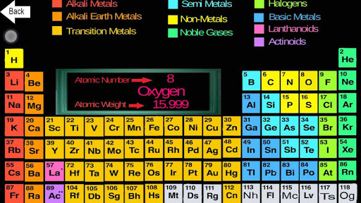It includes element's names, groups, atomic numbers and atomic weights with high graphics and fun.