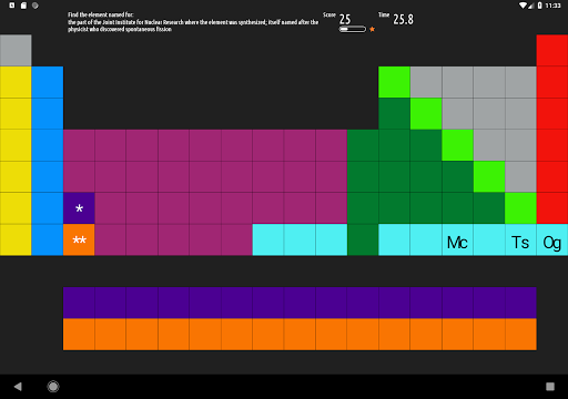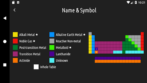 There is also a "whole table" category for each quiz, which takes you through all 118 elements.