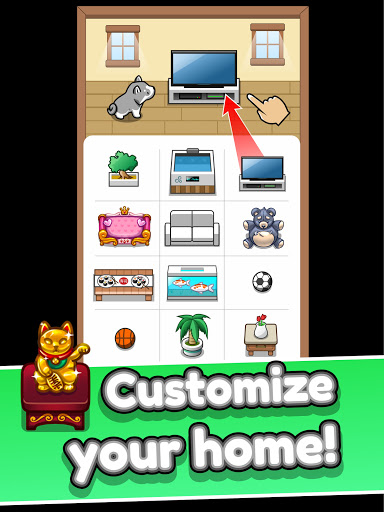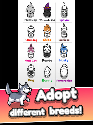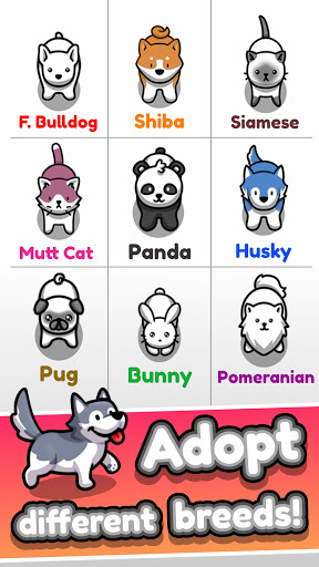 On Pet Idle, you will be able to give all your love and attention to your beloved pets, be it a dog or cat. Your pet will gain levels of experience as he has a good life and will learn several tricks: Sitting, rolling, jumping and much more! The happier your pet, the more money you make!