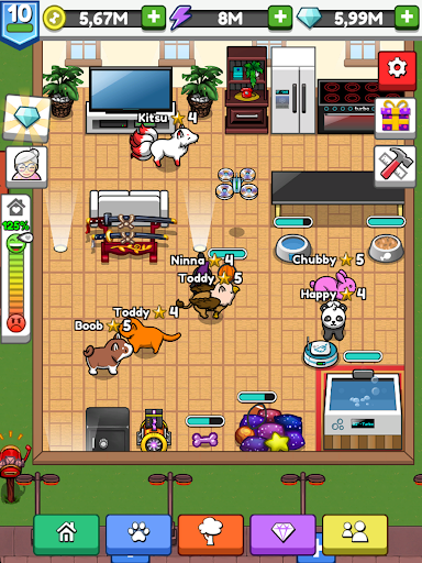 Build, expand and decorate your home, so you can have more and more pets! They will interact with each other, each with different personalities that will affect living together.