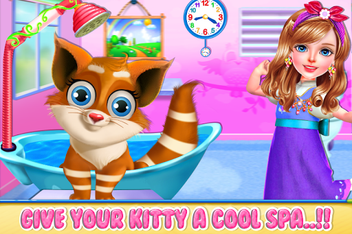 Hello, we all like animals and we are sure you'll be happy to know that we have prepared a kids game for you. Here you will meet a very beautiful and very playful kitty and you will have to take care of it, you have to always be there for her and help her to do everything she wants. You'll have fun very well, you'll be able to know two girls who can become your very good friends. We are confident that together with the two girls will be able to solve all the tasks that we have prepared. In this little kitty care game you will be able to test your skills and even more you'll be able to prove to everyone that you are a responsible child who can take care of a kitty or a puppy.
