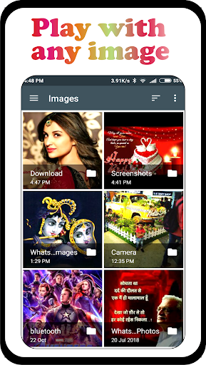 1) Play with infinite images like downloaded, clicked photos, whatsapp images, screenshots etc.
