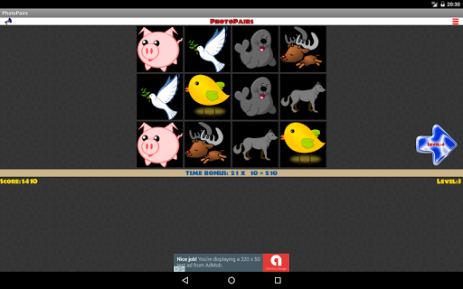 Have fun in pairs of pictures, you have to form all pairs before time runs out to move to the next level, if ways pairs followed the score will increase, and if you have time to become points.