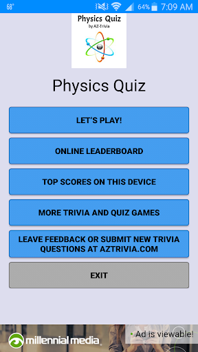 Physics Quiz by AZTrivia is a straightforward guiz/trivia app that will test your knowledge of physics facts, theory and history.