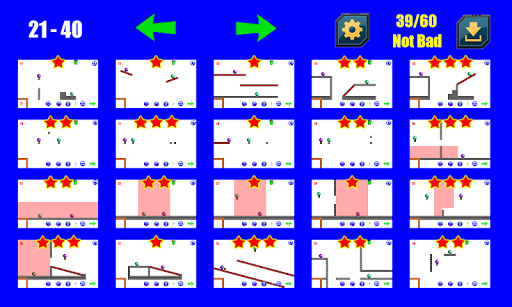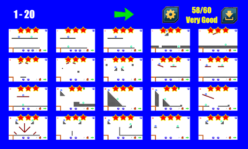 Test your mental abilities and stability over time. Try to solve physics-based logic puzzles. The rules are very simple. All levels are divided into groups of 20 levels. Try to get a maximum rating of 60 stars.