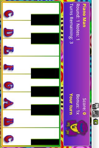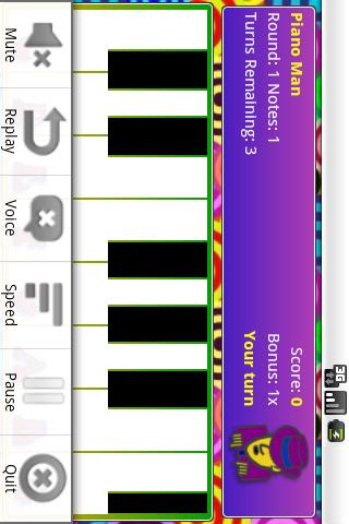 Piano Man is a Simon style memory game which uses a piano keyboard as the game board. Score points by mimicking the Piano Man as he plays a sequence of piano notes. Earn extra turns by playing quot;Name That Tunequot; with the piano. Learn the piano keys. Paid game version includes 100 songs, global high scores, and more rounds.