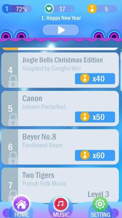 try to never miss Any piano black tiles and compleate to play every song!