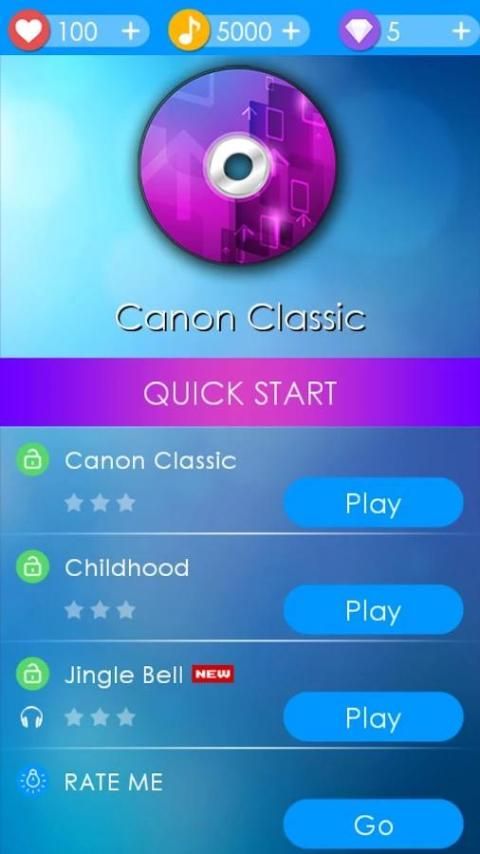 Through the guidance of the ring, tap on the piano tiles, avoid touching the white tiles, playing the melody of music.