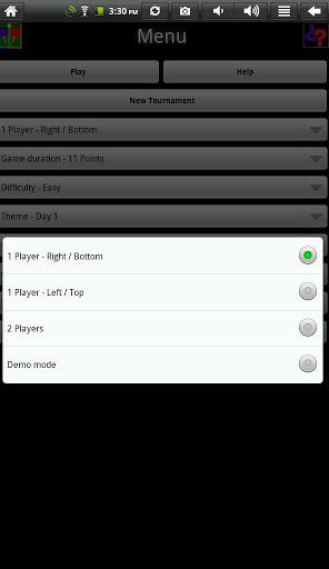 * Tournament Mode - where you play a variety of different skill levels as the tournament progresses.