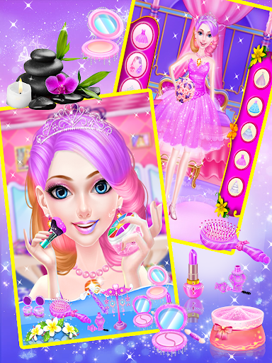After your beautiful pink princess makeover is done with the spa and facial treatment, give her the “best makeup” to make her look special and amazing. You can choose between a large variety of items available for Eye Shades and shadows, Change eye lens and you can even put blush on. Once your pony look super cute, change your pink princess’s hair from the catalog for a trendier look. So download this awesome game right away and start playing. Pink Princess Fashion Doll Salon is a paradise of makeup! Makeup like a princess bride !