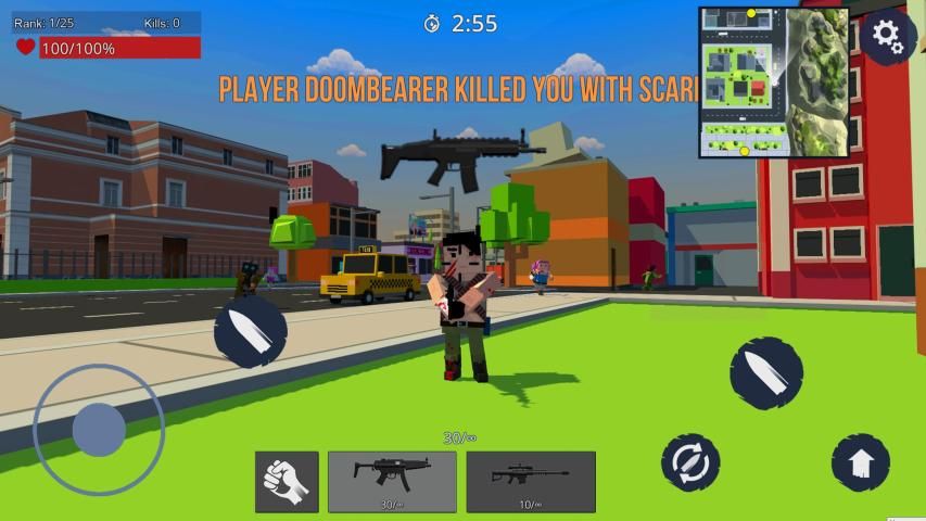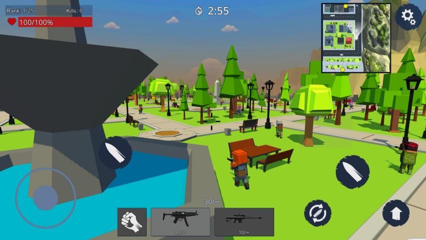 Traditional FPS mode. Those who enjoy classic 2D shooting games will like this mode. You will not need to guns up and look for equipment. Instead, this mode features the gameplay similar to popular pixel games: start the game and trigger first to win in the PVP battle. Enjoy creative destructions just like in your favorite 1st person games!
