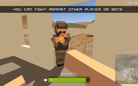 After some time, the battlelands will decrease. Beware of the battlefield's shrinking zone, it does devastating damage! Shoot with AK 47, pixel block gun, mine, submachinegun, awp and other weapons unit.