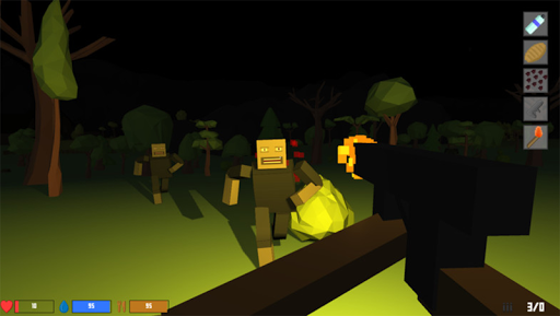 You play as a first person survivor from world war between human and zombies. To survive in this world, you have to collect items. You can craft various items from inventory, build houses. You have two weapons - axe and gun ( desert eagle ) that help you stay away from death. You have to mine metal to produce bullets into your shooter gun. To survive a night, you have to hide in tower or house (own or already built buildings). Making your own house is really intuitive with placing blocks. The aim of this game is to stay alive from undead people. Game consists of two mini worlds for exploration. This edition of game is made mainly for people who love pocket cube style games.