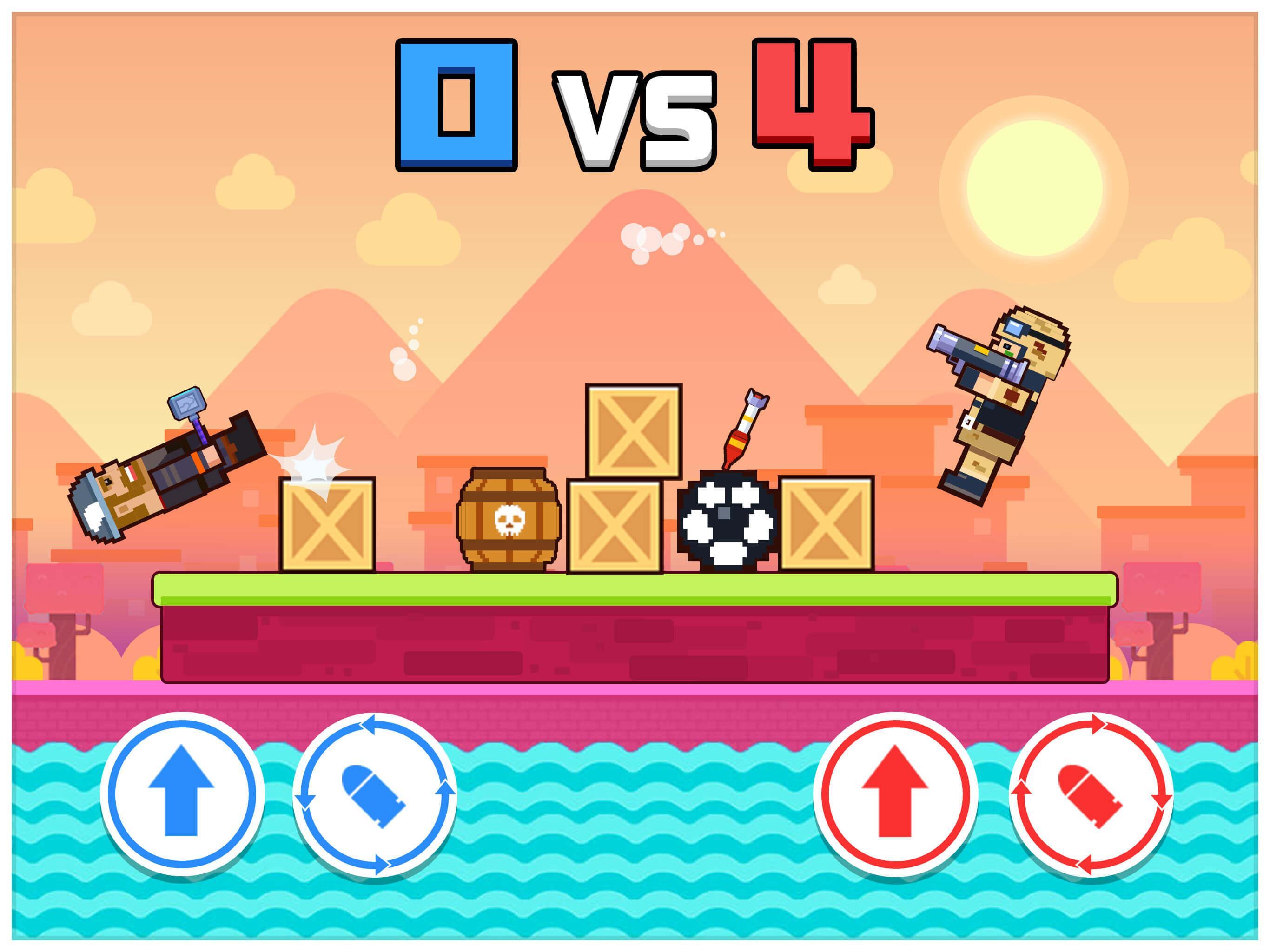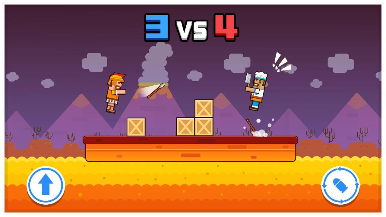 Deep water is under the platform. Two brave people have a final duel here,attacking each other with their weapons, until one of them fall into the water. Who still stand on the platform lively will be the royal winner!