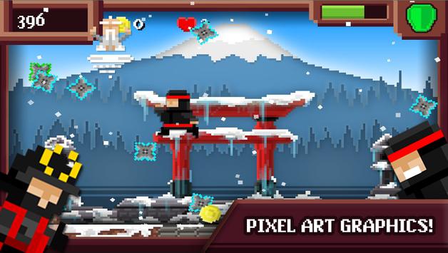 is an amazing and challenging action fun game where you play as a pixel ninja warrior! Accept the challenge and prove you're the best ninja assasin in the retro dojo and the pixel world! Avoid deadly stars, escape the obstacles and unlock upgrades and powerups!