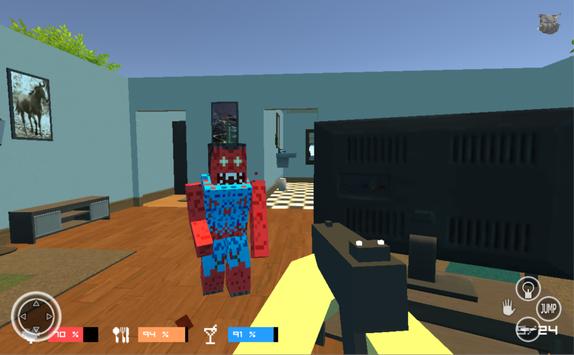 The room are not empty hungry and fury craft zombies waiting for food and people so that they can hunt them and spread the new X virus , the pixel craft zombies are very fast with howling voices those can really make you feel horror while you search them in room.