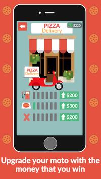 Try to dodge all the cars in the traffic. Take as much fuel as you can because you're going to need it to get your next delivery. Improve your bike with the money you earn and you will be a better player. Stay tuned to respond to deliveries when customers yell at you. Hey, a pizza!