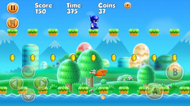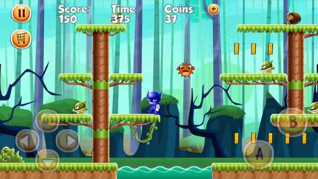 Welcome to Pj Adventure Hero Mask . This a free running game . Embark with Pj in a very long exploration adventure . This is a jungle adventure about pj who is trying to help his friend from the vicious croc capture . The Jungle adventure is about Pj who is trying to reach the black castle to help his friend pj masks . The world of exploration is waiting for you to cross , throughot the path there are a lot of monsters and obstacles which you have to kill and dodge . This adven ture contains a lot of different types of monsters , there are plenty of spiders , crocs , ninja , cruel crocs , hedgehogs , and many other monsters . You can run and jump in order to avoid and kill monsters and obstacles , but not only that , you can also collect coins to power up your character