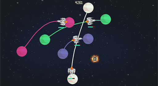 Your score increases every time a spaceship lands on a planet following the trajectory you drawn.