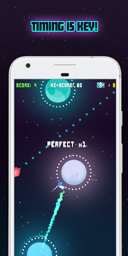 Tap the screen to launch from orbit. 🚀 Rocket across the galaxy, launching from planet to planet, picking up Space Bux, and dodging moons and asteroids along the way. ☄️
