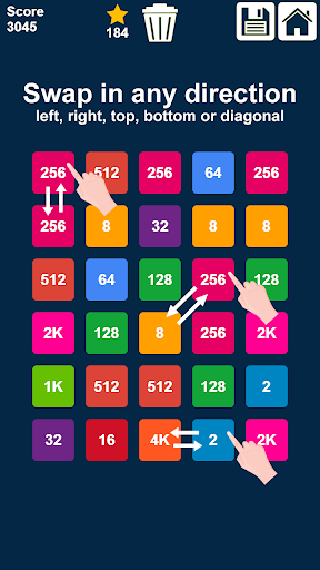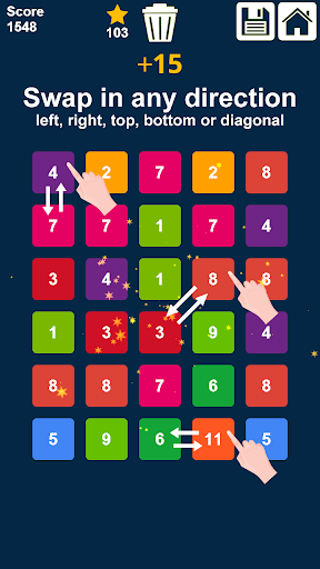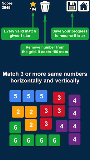 For match-3 games: you should match 3 or more same adjacent numbers in both horizontal and vertical directions only.