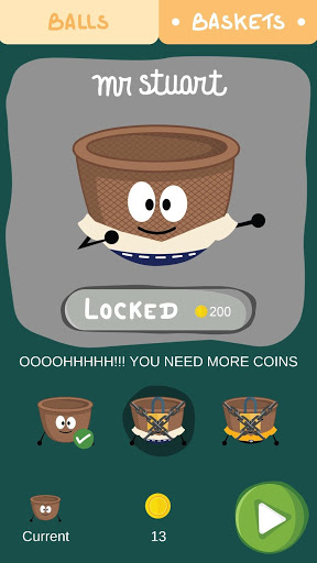 Unlock some new balls and baskets using in-game coins, dodge obstacles, try reach the top but you won't.