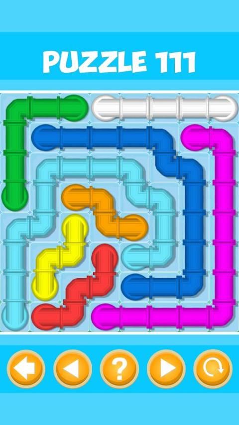 Connect dots with matching colors to create a pipe connection. Pair all dots with the same color and cover the entire board with pipes to solve each puzzle. But watch out, pipes will break if they cross or overlap!