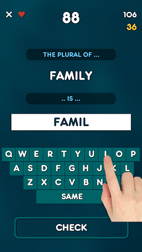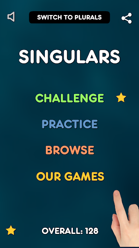 Plurals & Singulars Test & Practice is a new educational word game in which you will practice knowledge of English words and their plurals and singulars in an entertaining and challenging way.