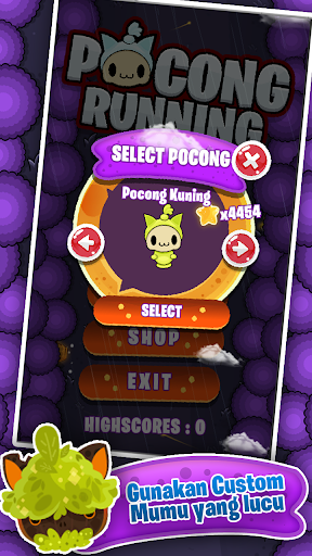 Pocong run Adalah game Running yang bertemakan Horror Lucu , Game ini bisa kalian mainkan dengan sangat mudah , game ini Mudah untuk dimainkan tapi susah untuk di tamatkan , raih score tertinggi mu dan buka semua custom lucu mumu yang tersedia .