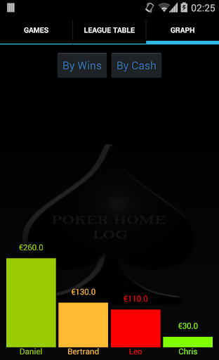 You can also see who is the best poker player of your friends gorup looking the league table by wins, and who is the best awarded player looking the league table by total cash.