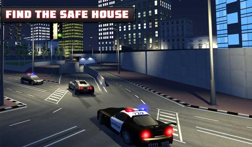 Dare to become most wanted criminal in night police vs robbers chase game. The rivalry between deadly criminals and US police department takes a new twist in latest sequel of police vs criminals game. Buckle up, hit the gas pedal and hold on tight for extreme car drifting at mid-night. This time big city environment has turned twisted and hazardous for night car driving missions. Drive recklessly in exotic cars and escape from metropolis chasing night car over spectacular city. Feel the intensity of no-brakes allowed in street racing with realistic car damage for grand chase hurricane. Show guts for grand gangster theft and intriguing driving missions in suburban town. Drive sports car from perilous maze of night city streets after robbing gold and diamonds from big bank. Roll into underworld mafia driving sim and complete gangster escape missions from US police car chase. Become most wanted criminal & escape from night police car racers by safe driving in cops versus robbers sim. Flee through night city traffic, perform modern stunts and don’t get busted by crazy police cars.