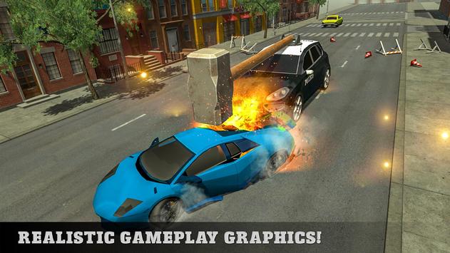 US Police Chase Hammer Car Crash Simulator Game provides you exceptional experience of getting engaging in police hammer man car crash engine challenges from police car games involving speed bumps or impossible ramps with each hummer car utilizing battle simulator or engaging racing simulator along with fire engine simulator used in police car and fast monster cars used for bank robbery in realistic mad city. In this 4x4 crazy trick stunt game, successfully get involve in police chase your rival having car crash simulator & crush it with your sledgehammer with amazing luxury cars or sports cars including smart car or colorful american muscle, cop car along with monster car to become hammer hero or pro extreme racer to win each crash derby challenge.
