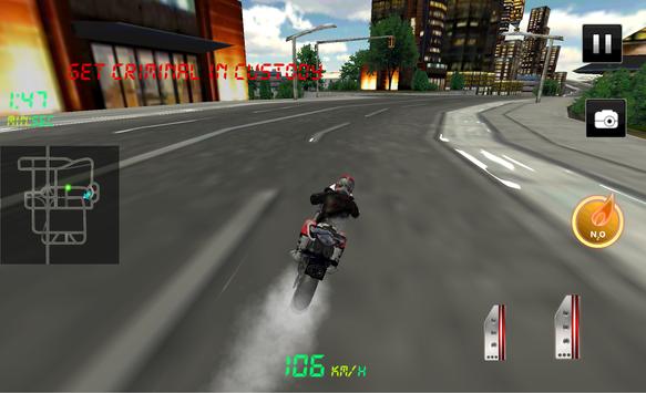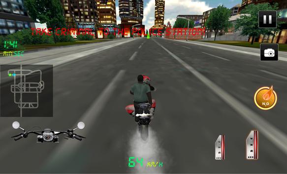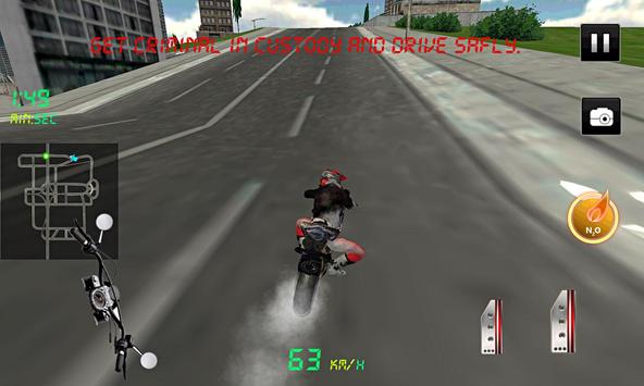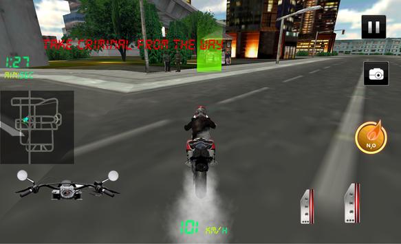 Ride on motor bike from police station and chase gangster cars with police arrest missions. Drive motorcycle fast on the highway roads. Keep your eyes for gangster’s gang war and criminal on the streets in the open city map. Play as police officer motorbike cop and show your fast biker skills with the motorbike arrest missions. Track suspect vehicles before the car crash and cause destruction.