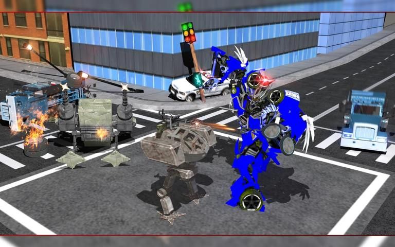 For a street dispute, take the transformer robot which can transform into car and back into a ground robot. These robots are designed for combat action and feel the realistic police action. They can fire missiles and bullets at the enemy. Hop into your splendid police SUV and dash to the disrupt point. Destroy all of the malicious robots and tear their bodies apart and save the day.